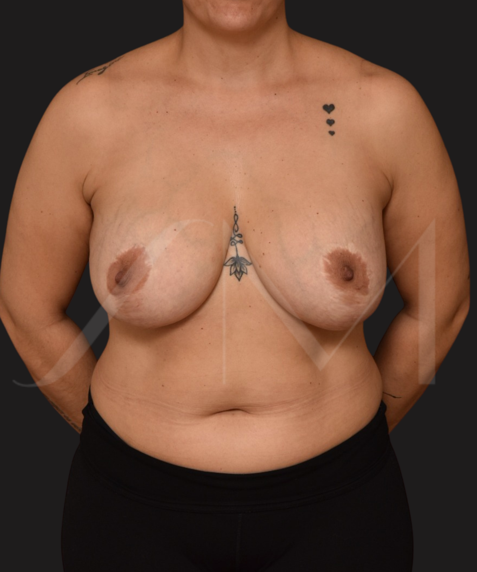 Seno → Seno tuberoso Correzione di mammella tuberosa di grado severo con tecnica ibrida: protesi anatomiche da 290cc e mastopessi circum-verticale