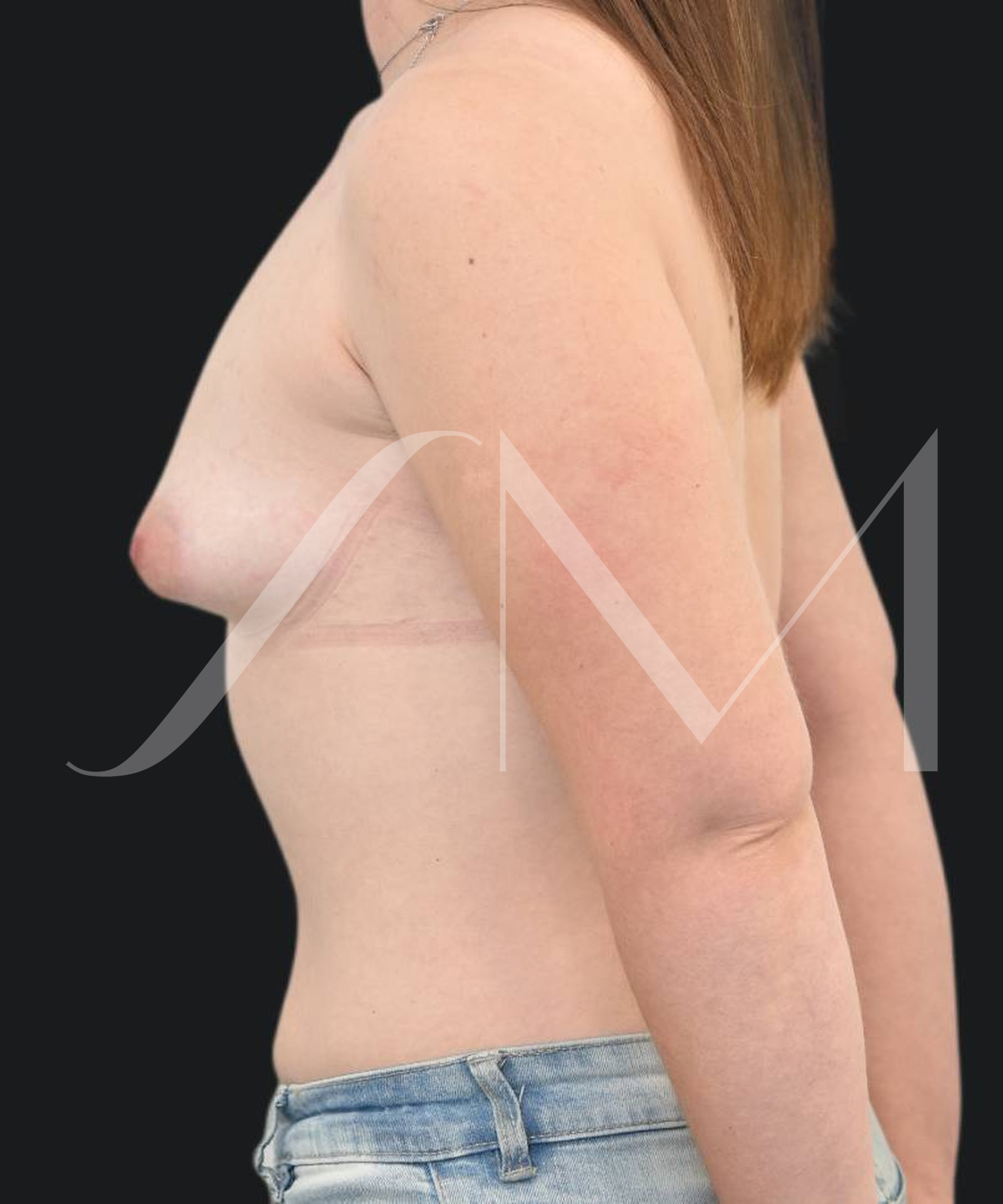 Seno → Seno tuberoso Correzione mammella tuberosa grado moderato, Protesi Anatomiche 430cc proiezione extra Alta/ Tecnica sottomuscolare “Dual Plane” + Internal bra